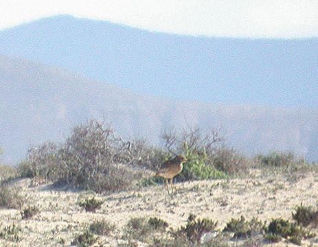 In the afternoon we drove to El Cotillo. Saw a sanderling and a spectacled warbler along the beaches, and then drove south of the town onto the plain. Saw ca. 5 Houbara bustards, ca. 5 cream-coloured coursers, 4 black-bellied sandgrouse, and a raven. I knackered the rental car by driving over some stones and breaking the pipe supplying servo fluid for the power steering, and almost ran out of petrol also. Nevertheless, it was worth it for the birds!