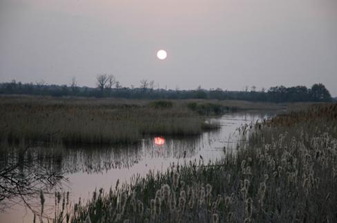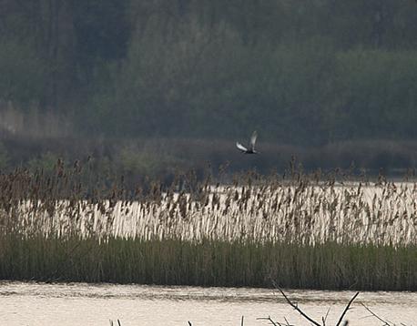 In the evening, the WHISKERED TERN was fantastic – it is in habitat just right for this species, and hawked insects over Noah’s Lake. A buck roe deer fed just outside the lake; also saw Cetti’s warbler, a pair of greylags with 4 goslings, garden warbler, 2 cuckoos and at dusk a hobby and the whiskered tern fed over a wonderful sunset. At dusk a cuckoo was calling at Priddy mineries.