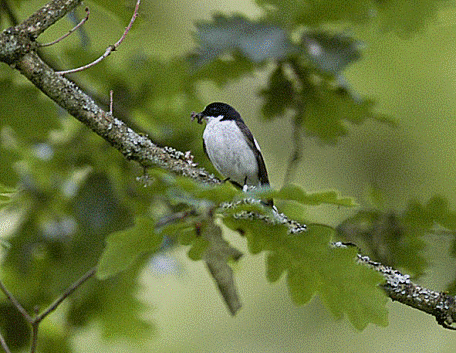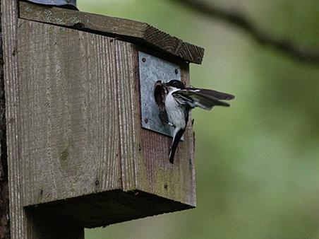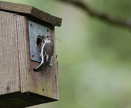 Parkend, Forest of Dean in afternoon. Many pied flycatchers feeding young in nestboxes, one pair of redstarts feeding young in a tree crack, 5+ wood warblers singing. Lots of grey squirrels in the woods. On the return journey saw 2 mandarins and a dipper on the stream by the pub in Parkend village.