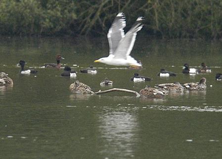 Heavy rain for most of the day, but a productive trip to Chew produced a pair of ferruginous ducks (below), a common sandpiper and a black-tailed godwit. Saw at least 1 first summer yellow-legged gull, and then spotted an adult on the photograph below! I then visited Blagdon lake to see my first spotted flycatcher for several years.